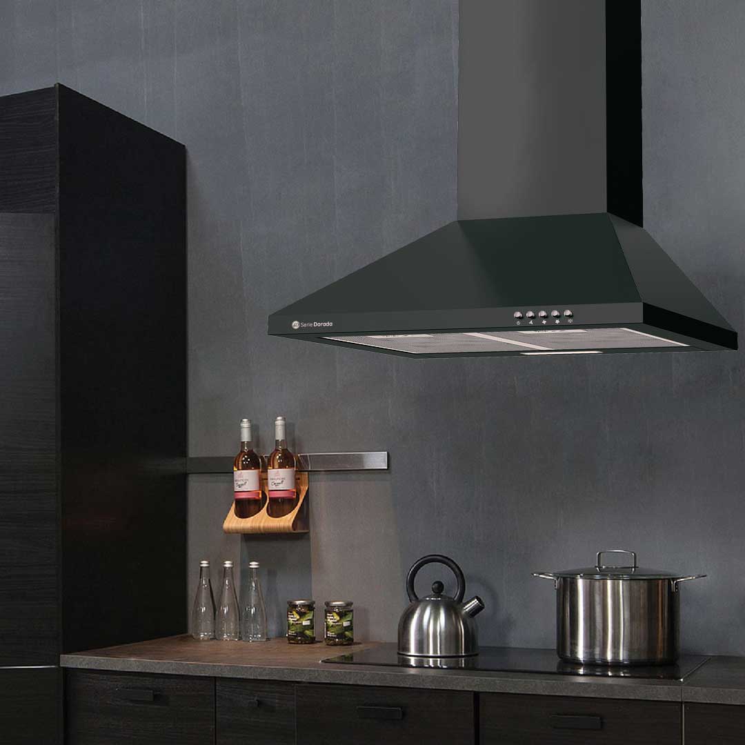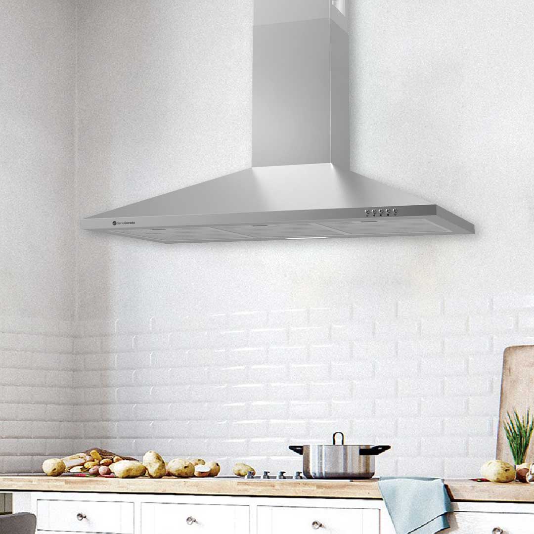 Potencia y amplitud en acero inoxidable, 90cm de ancho. Succión de 380 m³/h.